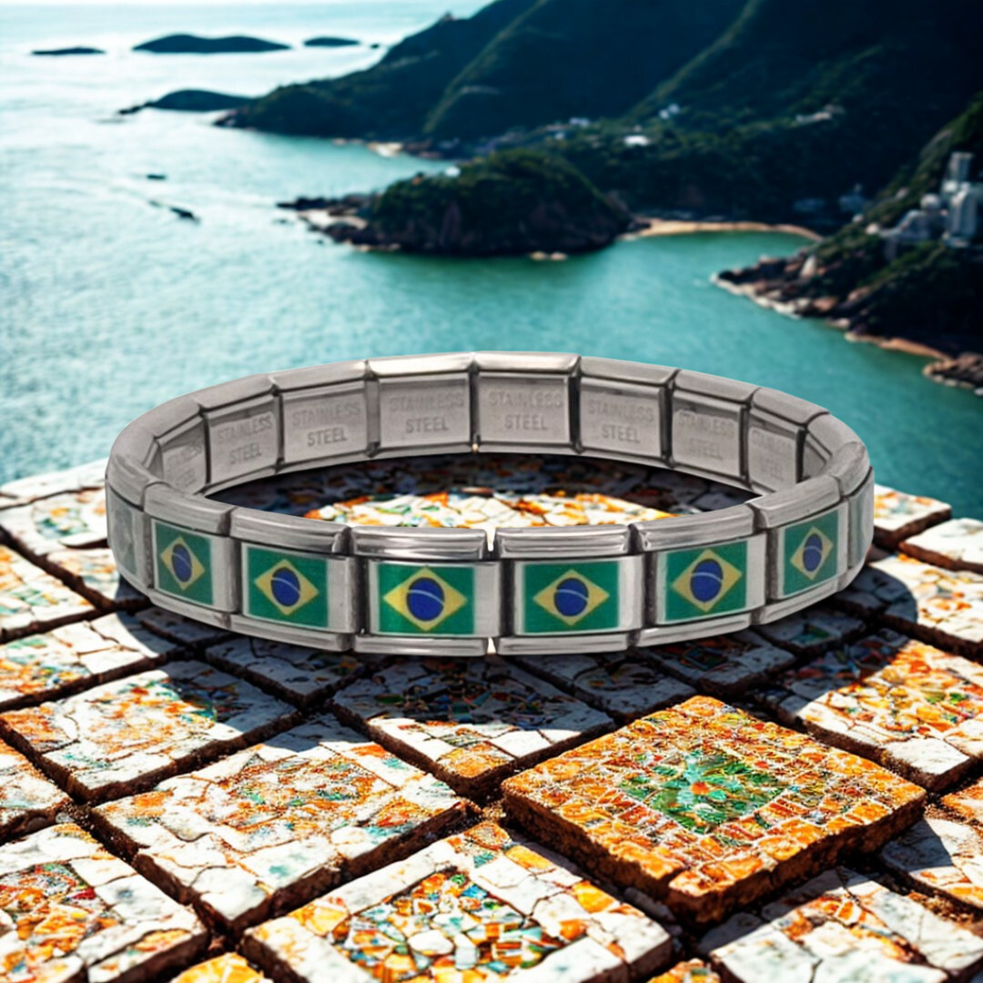 Pulsera con Bandera de Brasil – Acero Inoxidable, Regalo Original