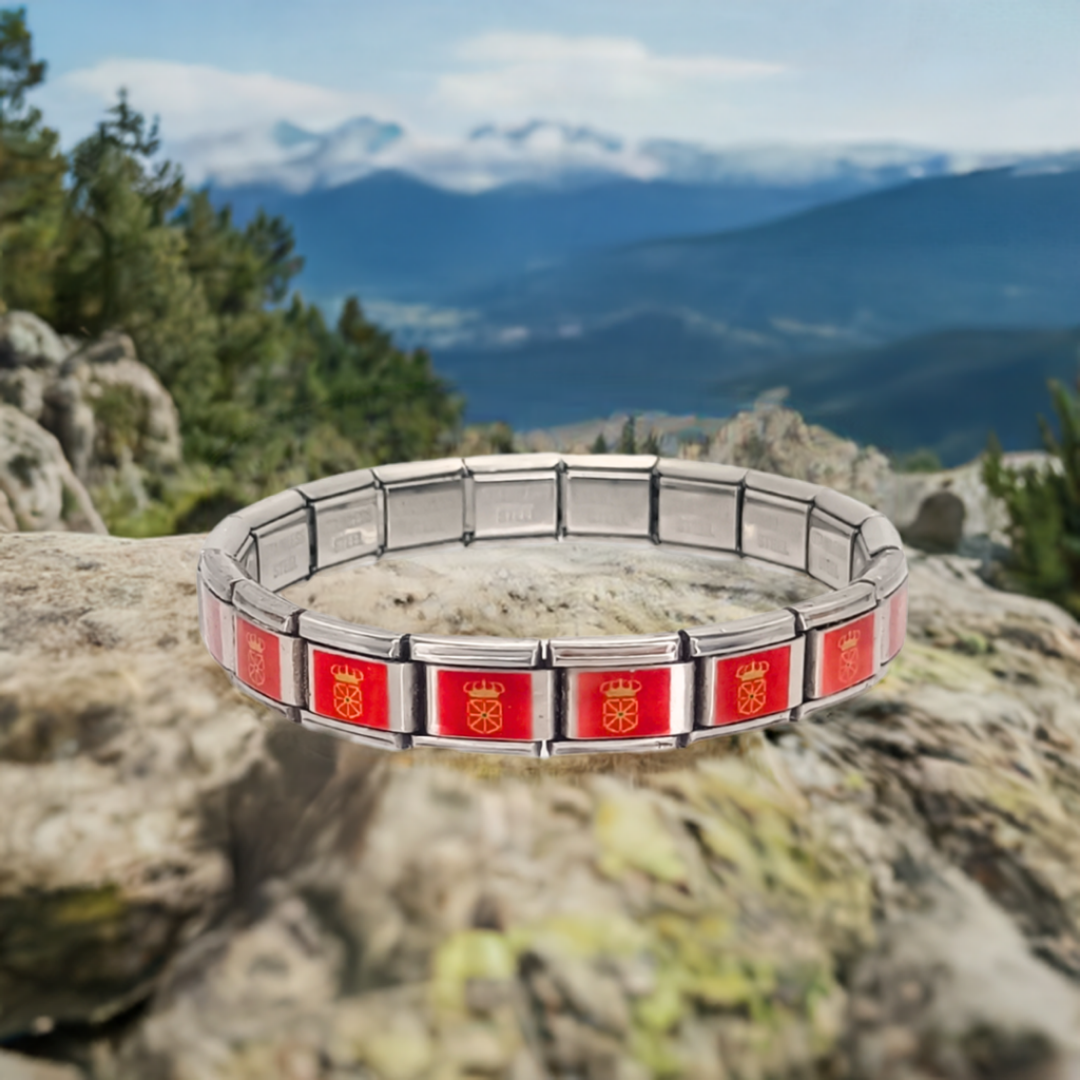 Pulsera con Bandera de Navarra – Acero Inoxidable, Regalo Original de Comunidad Autónoma
