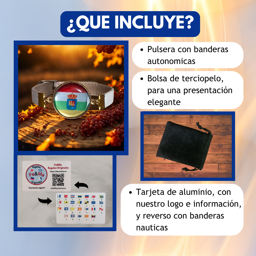 Pulsera con Bandera de La Rioja - Medallón en Correa Ajustable, Regalo Original con Orgullo de Comunidad Autónoma