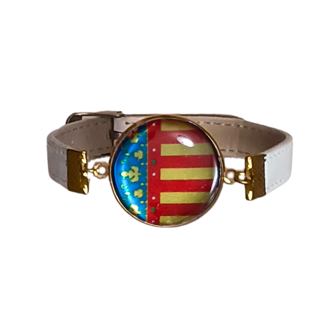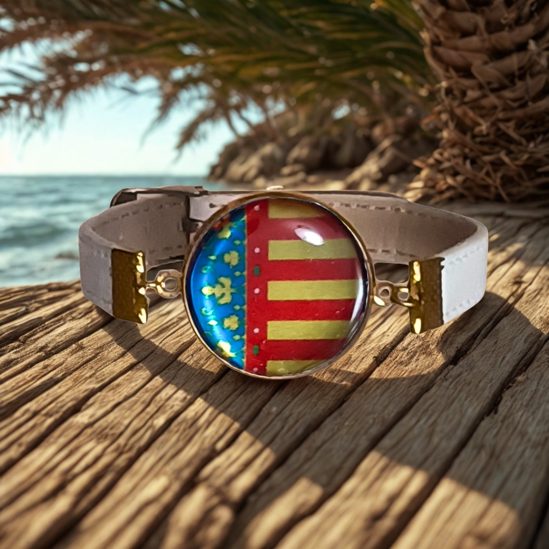 ¿Buscas una forma especial de mostrar tu orgullo por Comunidad Valenciana? Esta pulsera con bandera de Comunidad Valenciana combina elegancia, simbolismo y diseño artesanal, ideal como regalo original o como detalle personal con identidad.