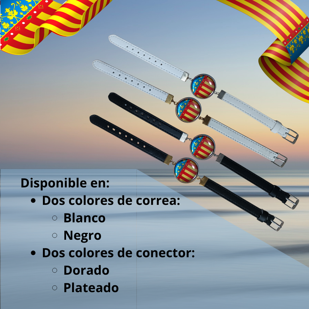 Pulsera con Bandera de Comunidad Valenciana - Medallón en Correa Ajustable, Regalo Original con Orgullo de Comunidad Autónoma