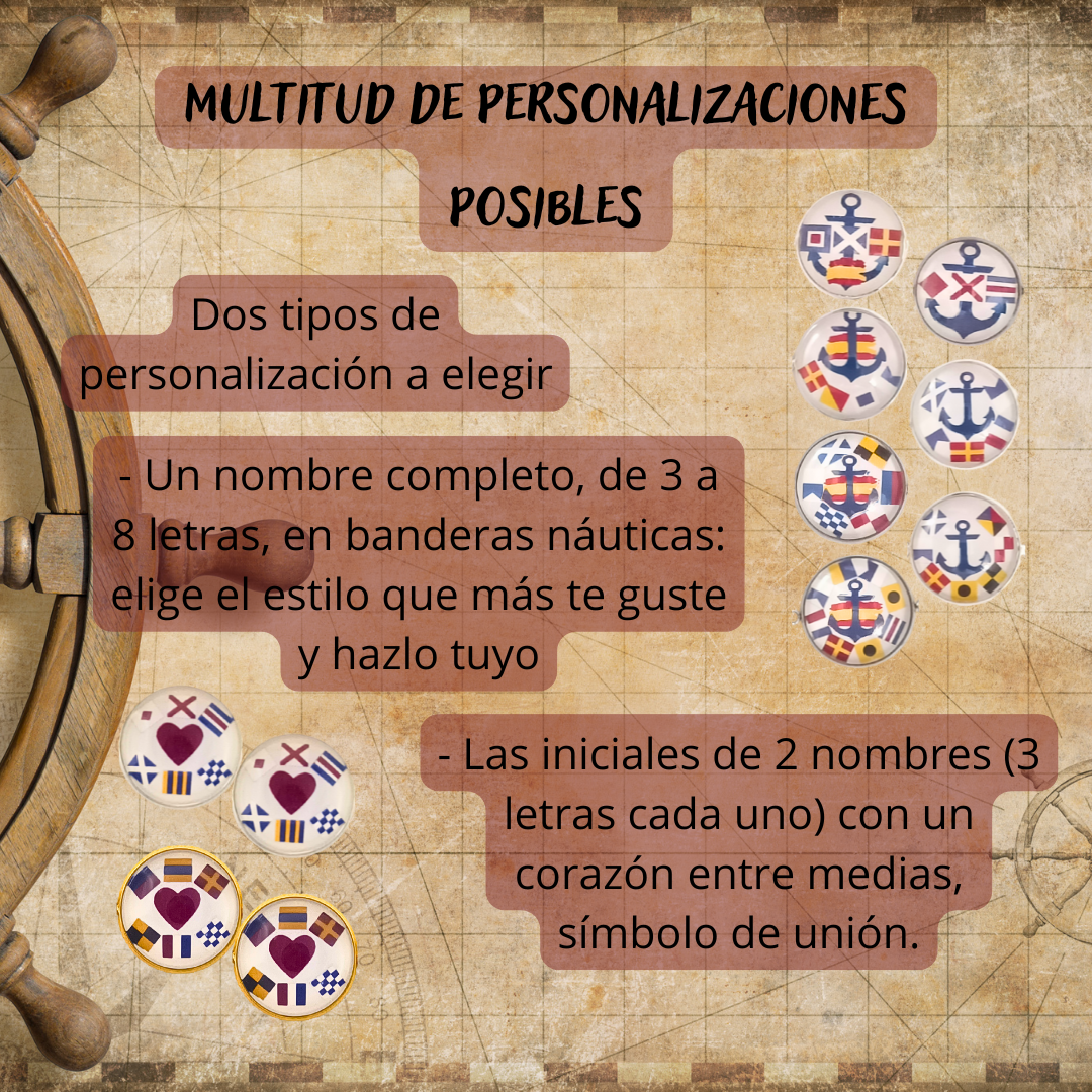 - Personalización única: Cada medallón se puede personalizar con letras o palabras en banderas náuticas, formando nombres, iniciales o mensajes especiales.