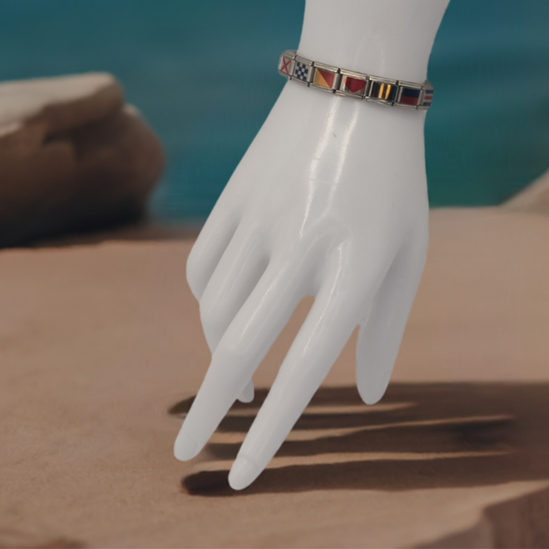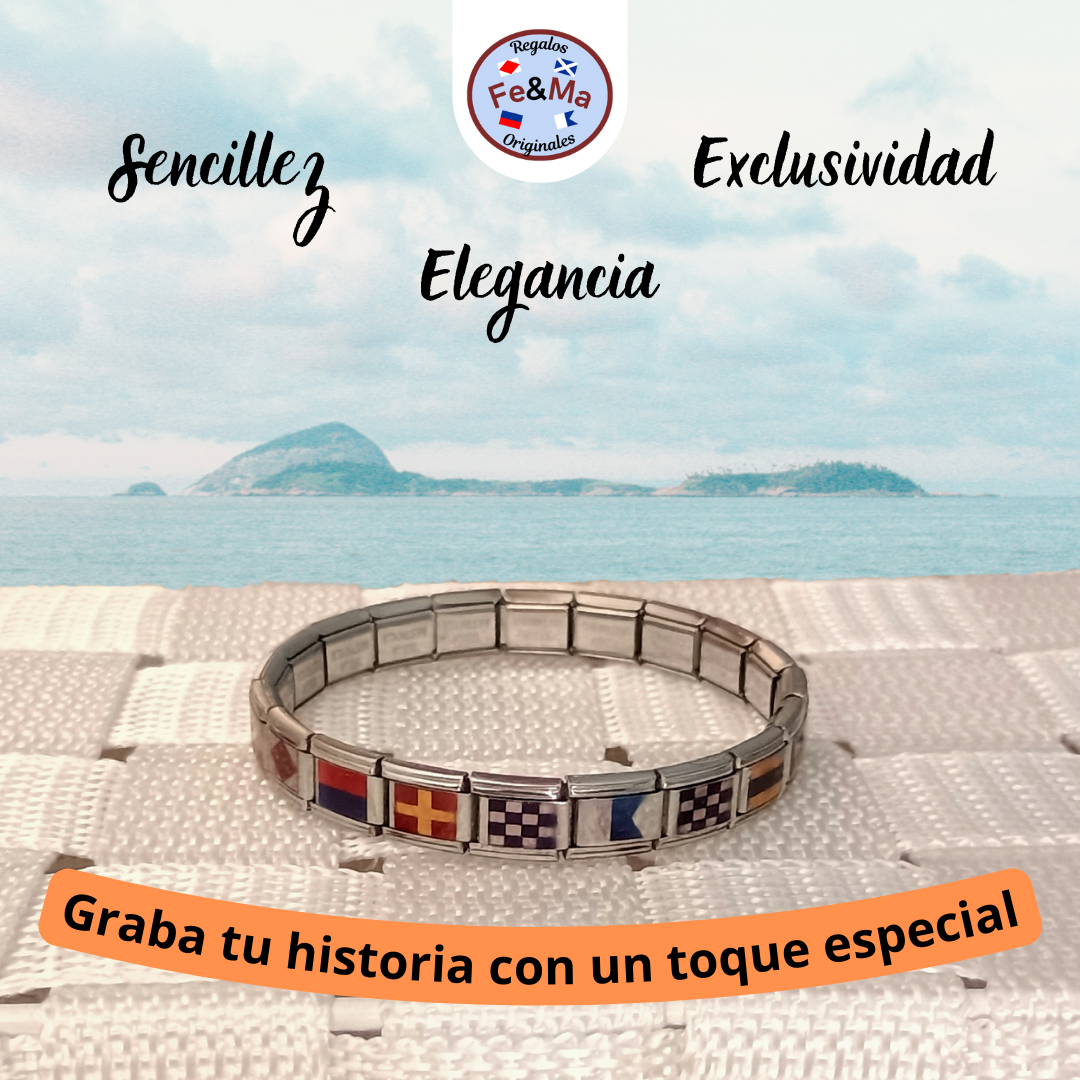 Diseña un regalo único y especial: Personaliza tu pulsera con banderas náuticas, donde cada bandera representa una letra. Ideal para crear nombres, iniciales o palabras con significado especial. Perfecto para amantes del mar y ocasiones únicas como cumpleaños, aniversarios o el Día de la Madre.